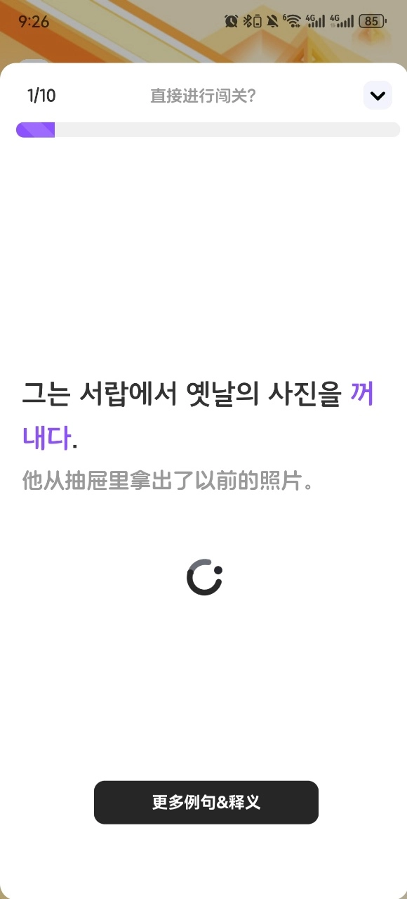 4、不同的单词闯关可以点击查看更多例句和释义。