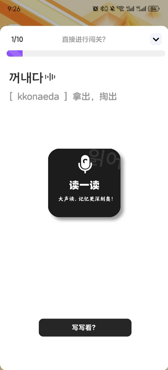 3、只需一键点击进入,就能直接开始闯关练习,并且配有语音教学功能。