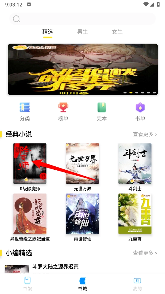 2、在书城板块选择喜欢的小说作品,如图。