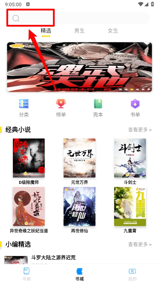 2、如图所示,输入书名一键搜索。