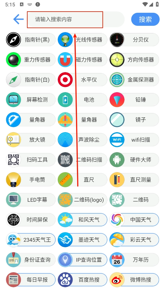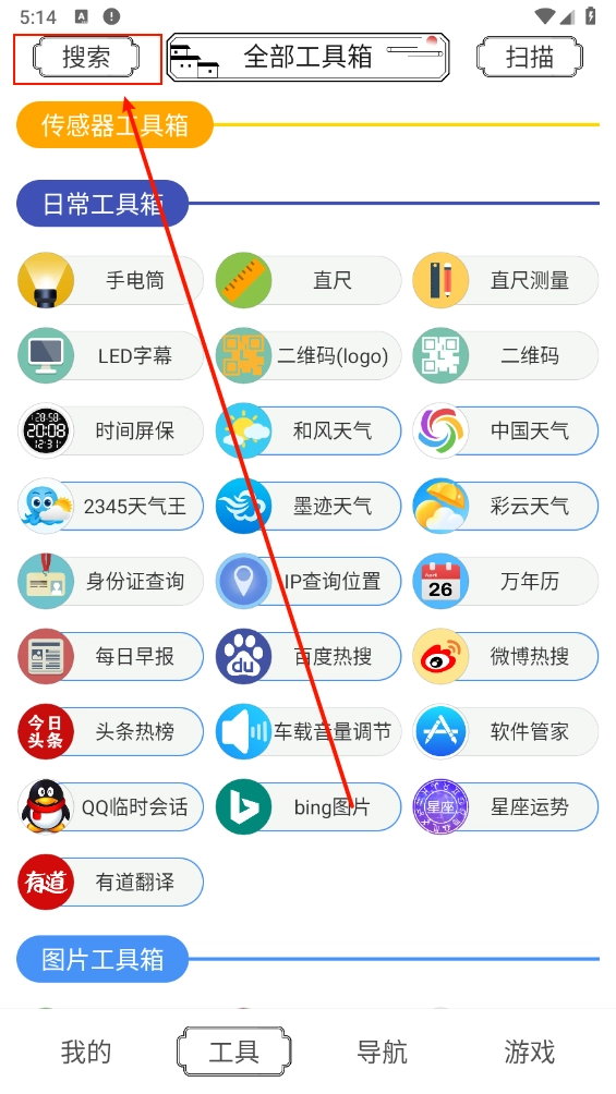 3、还能一键点击左上方的搜索工具,查找自己需要的工具。
