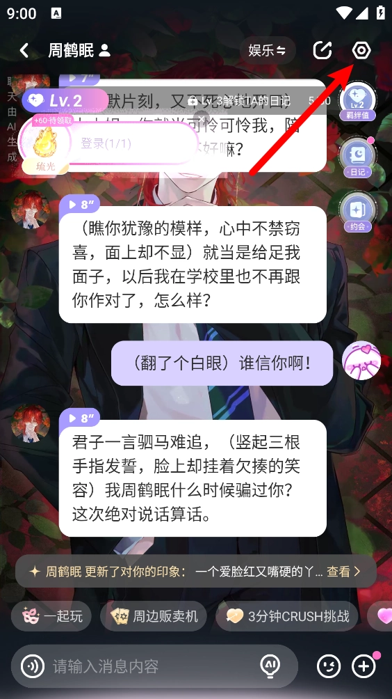 2、羁绊升级!你们的每次对话和互动都会被记住~