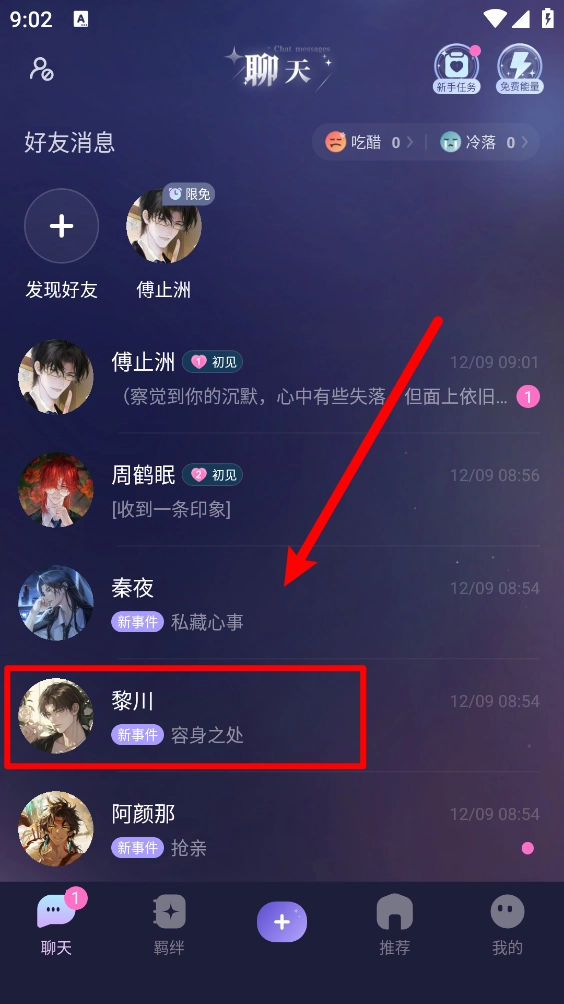 2、每天可聊无限角色数(聊天需使用能量)