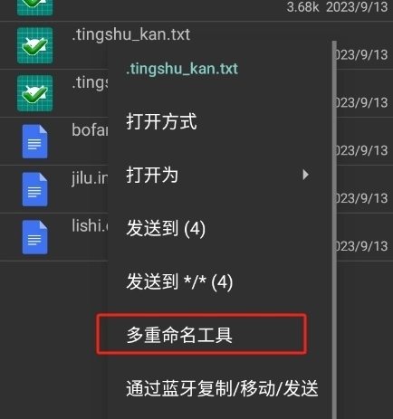 接着长按任意文件调出菜单,从中选择【多重命名工具】这个选项。