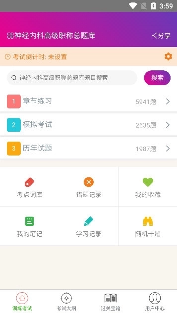 题库资源丰富:平台收录了海量且持续更新的优质试题,全面覆盖神经内科领域的各个知识点与考试题型,能够充分满足不同层次考生的多样化需求。