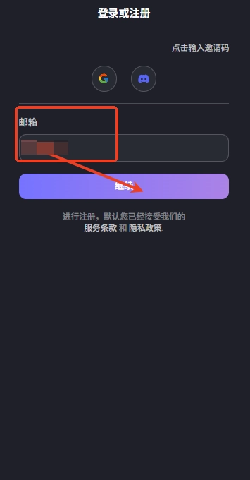 2、以“邮箱”为例,操作流程为:输入邮箱号后点击“继续”,再按照提示完成登录步骤。