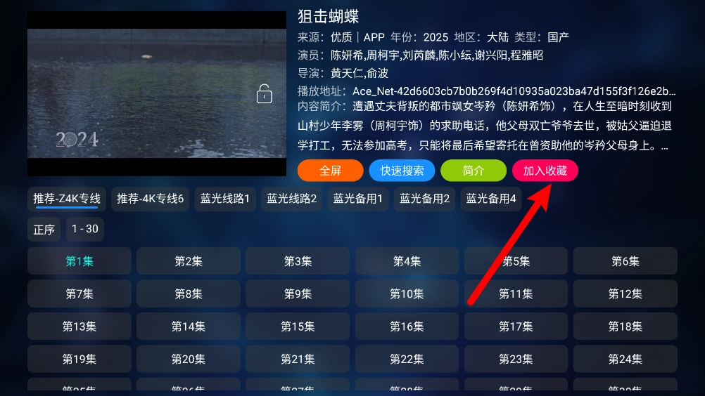 4、一键打开,进入播放详情页,点击"收藏"按钮。