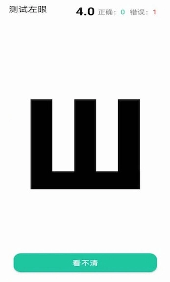 单眼测试:遮盖一只眼睛,逐个辨认屏幕上显示的“E”字开口方向,以此完成单眼视力的评估。