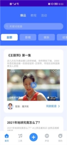 1、首先在本站安装魔音工坊,进入软件首页后,能看到影视、娱乐、动漫等各类同款配音内容。