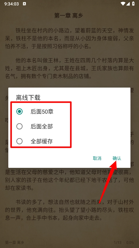 2、在Wi-Fi环境下一键缓存整本内容,即使处于地铁、飞机等无网络的场景,也能畅快阅读。