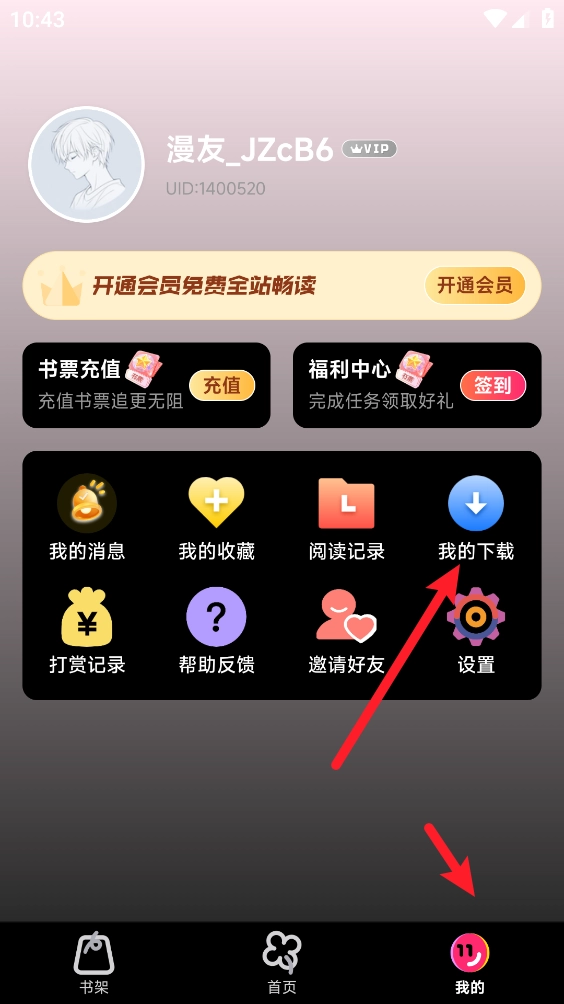 4、最后在我的页面点击“我的”进入,即可开启离线观看功能。
