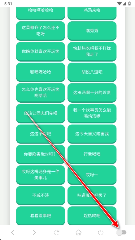 2、进入主页后点击右下角箭头所指开关。