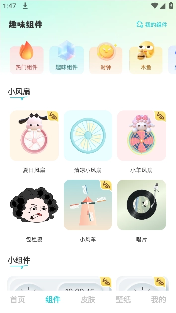 3、切换至组件板块,多个趣味组件可以使用。