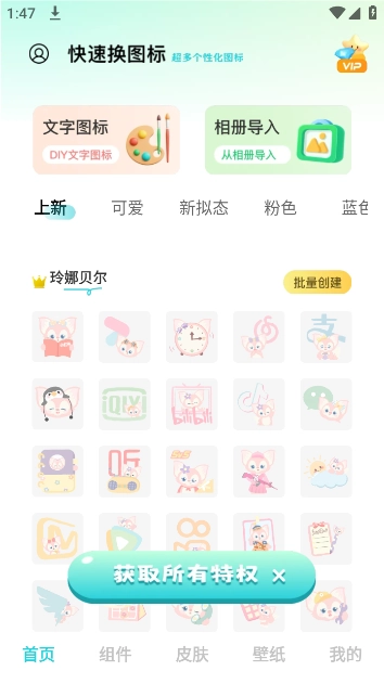 这是一个简单好用的美化工具,能快速更换图标,提供海量精美图标包资源,一键就能替换所有图标,还能自定义图标。此外,它还有各式各样的键盘皮肤、创意桌面小部件和精美壁纸可供选择,各种风格都很齐全。
