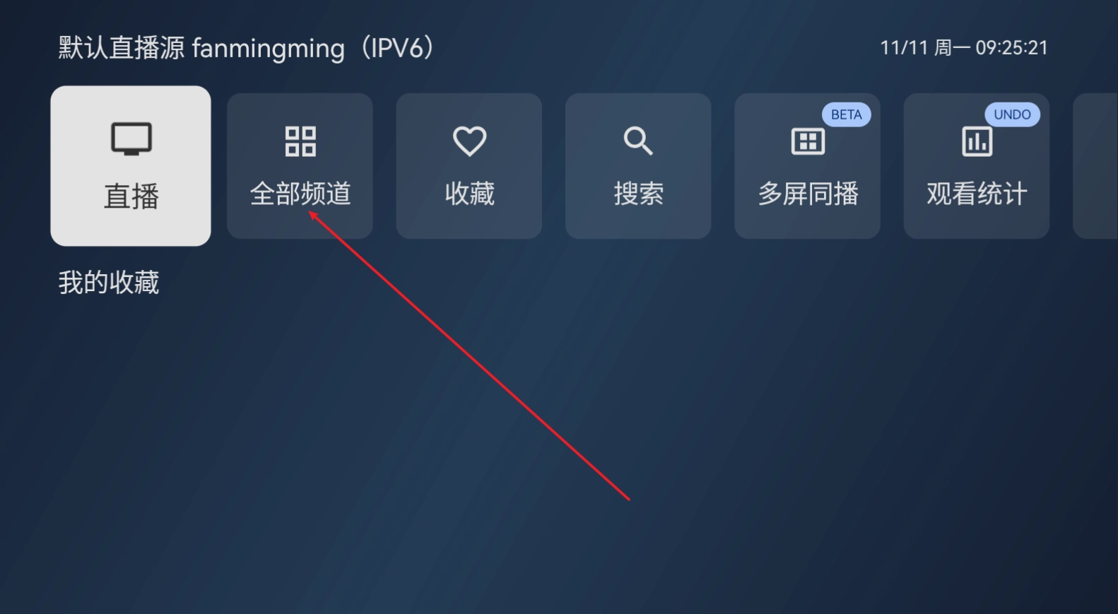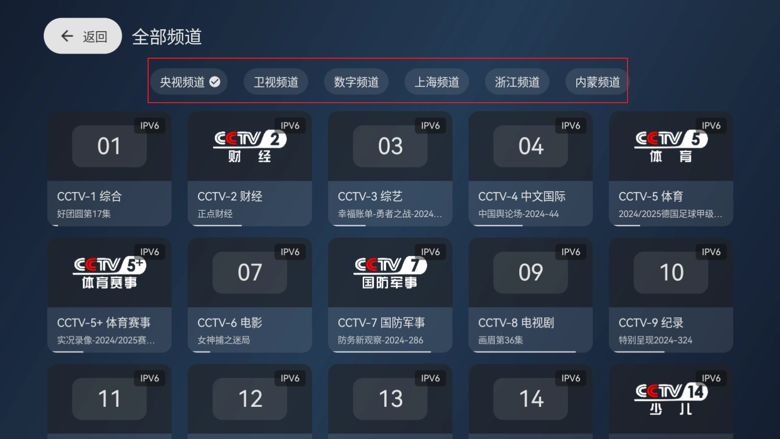 3、如图所示,大家能够依据自身的需求挑选对应的频道来播放内容。