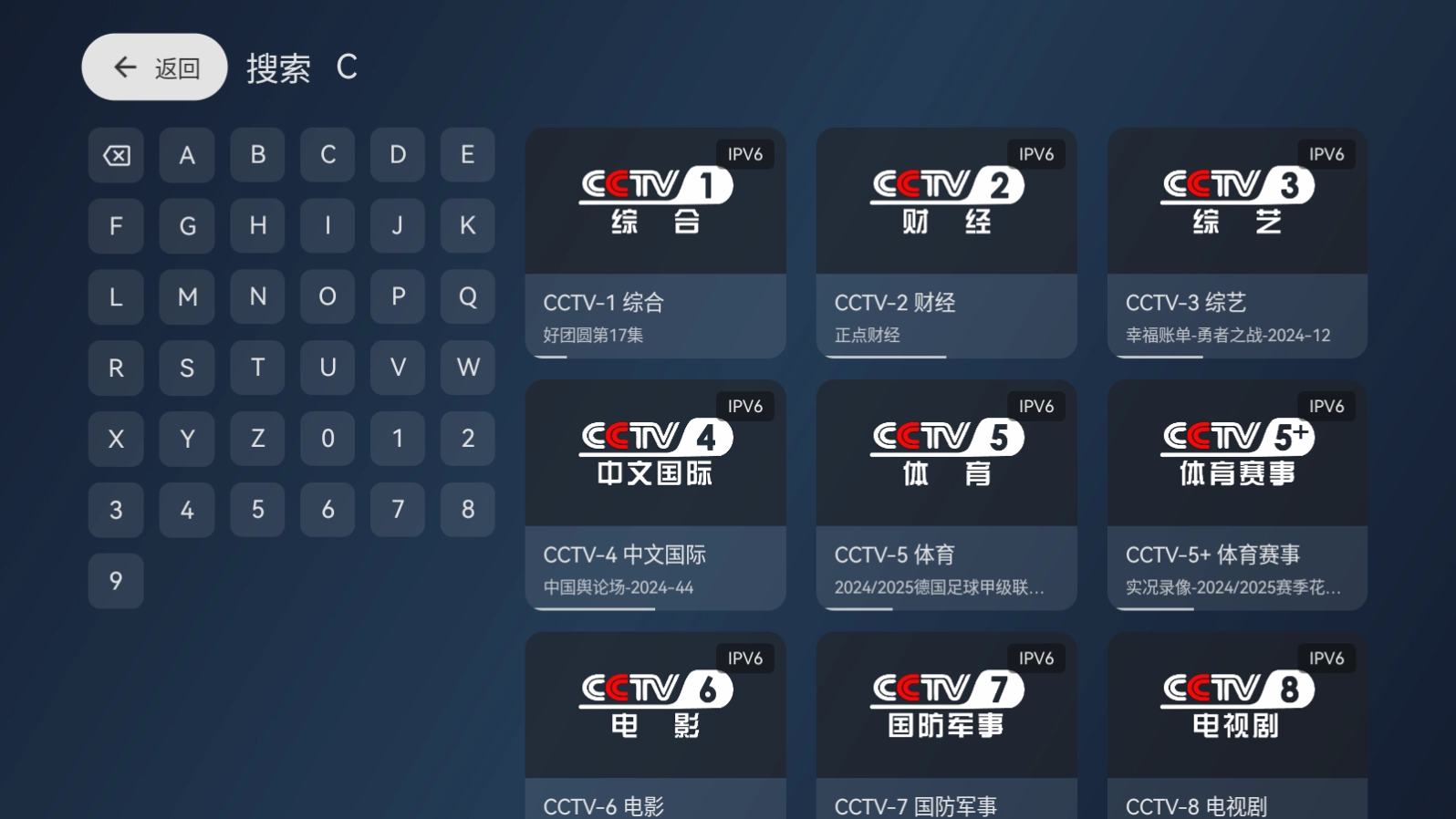 6、最后也可以点击搜索框,输入关键字母来查看所需频道。