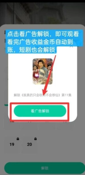 4、点击“看广告解锁”按钮,解锁完成后即可观看内容,同时还能获得金币奖励。