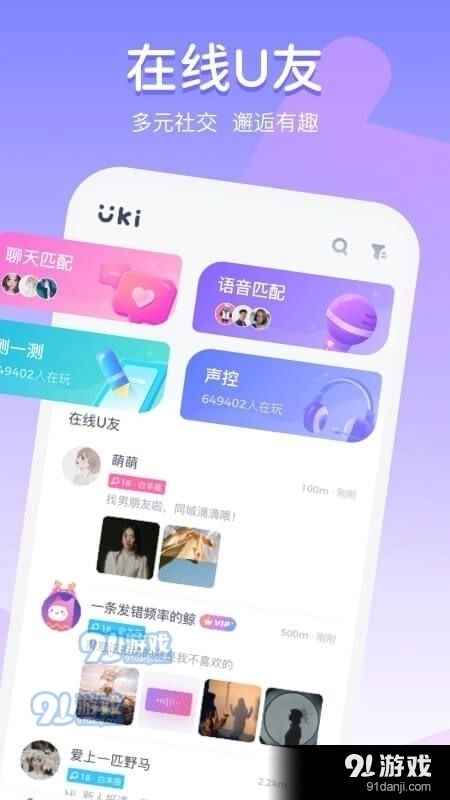2、Uki软件包含多种交友娱乐模式,用户可以参与丰富的活动,并依据自身喜好的类型进行选择。