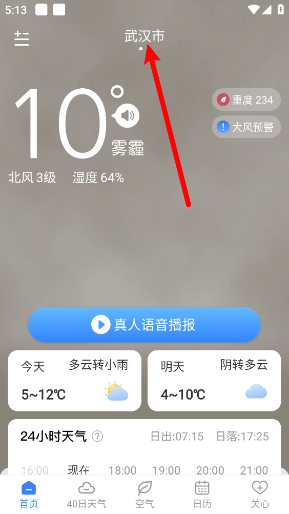 1、先在本站后,打开时雨天气。