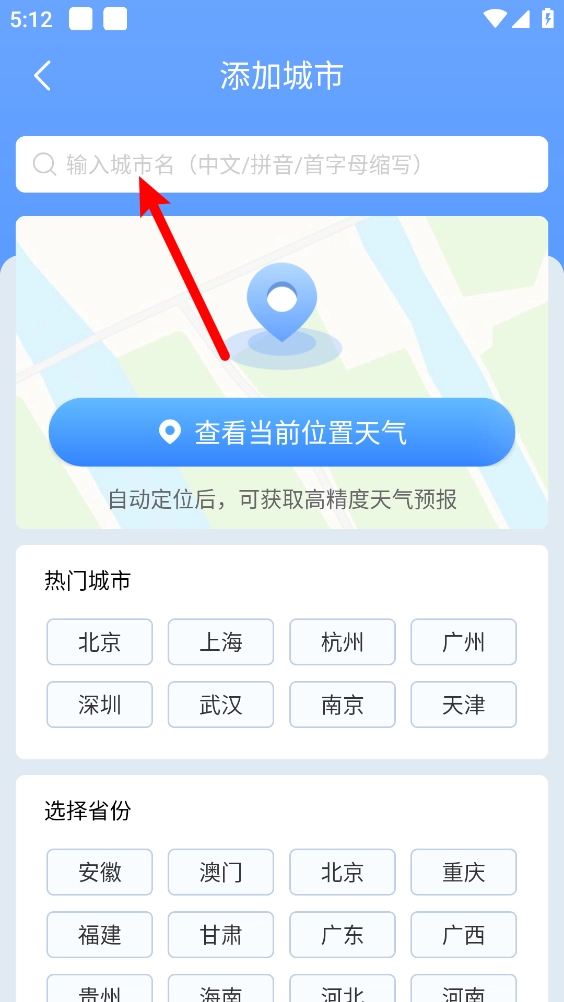 4、然后或直接输入需要添加的城市。