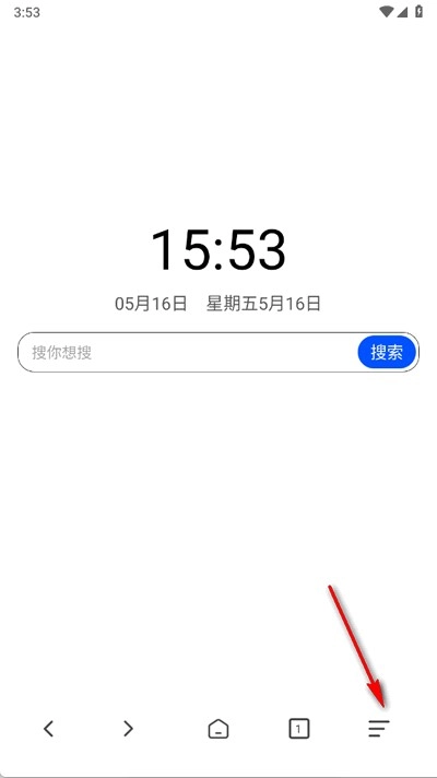 1、打开红果浏览器,在首页点击右下角三横杠图标