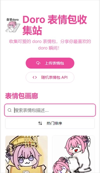2、API接口功能:提供获取随机Doro表情包的API接口,无需认证即可直接调用,便于开发者将其集成到自身项目中。