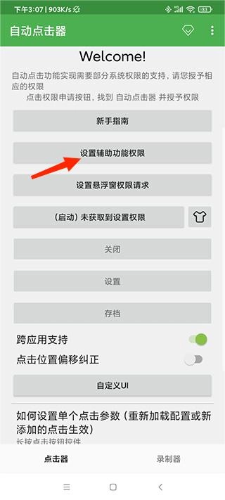1、自动点击器这款软件,在打开使用前,需要先设置好辅助功能权限。