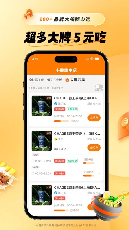 选择活动店铺,点击“抢名额”开启霸王餐之旅