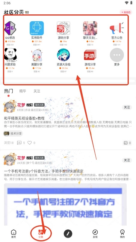 4、通过分类可以选择自己感兴趣的社区进行关注;