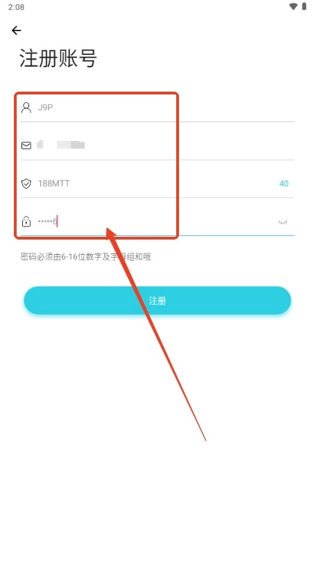 5、输入用户名,QQ获取邮箱验证码,输入密码;
