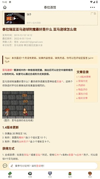 泰拉酒馆为玩家们搭建了一个社区平台,在这里大家能和不同类型的玩家交流讨论,找到拥有共同话题的伙伴,让游戏不再是孤单一人的旅程。此外,玩家还可以查询到各类装备的合成与获取攻略,了解泰拉瑞亚的所有事件,以及各种NPC和Boss的位置信息,相关的资讯动态也能在其中找到。