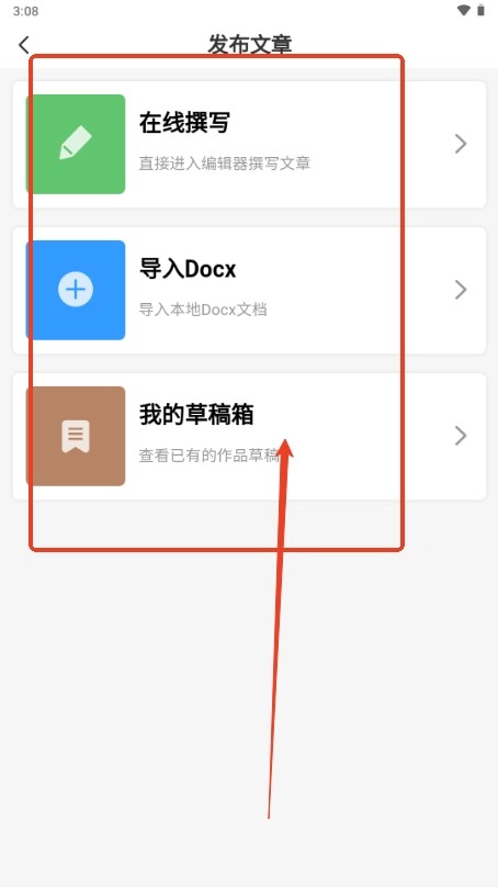 3、选择撰写方式,可导入,可草稿,也可在线。