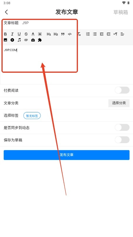 4、选择完毕以后输入文章标题和文章内容;