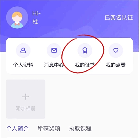 点击右下角“我的”,点击我的证书,即可查看证书。