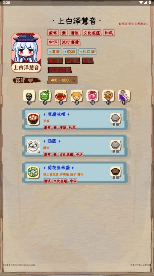 2、涵盖了东方夜雀食堂里的所有角色,你能够了解到这些角色的特性。