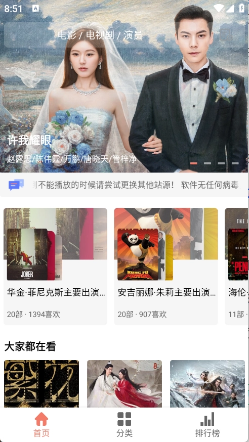 2、分类功能对影视内容进行了细致划分,涵盖电视剧、电影和综艺等不同类型。