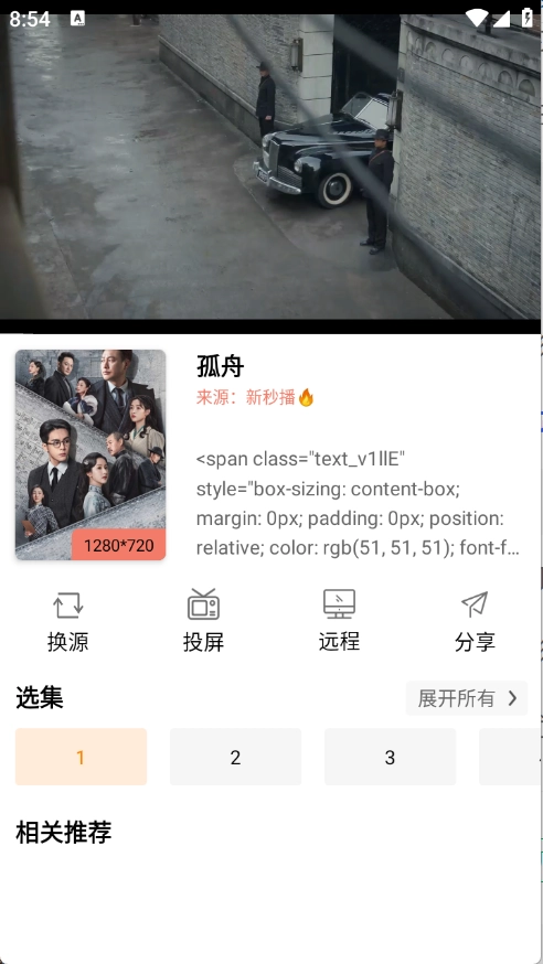 5、点开想看的影片后就能播放,还可以进行换源、投屏等操作。