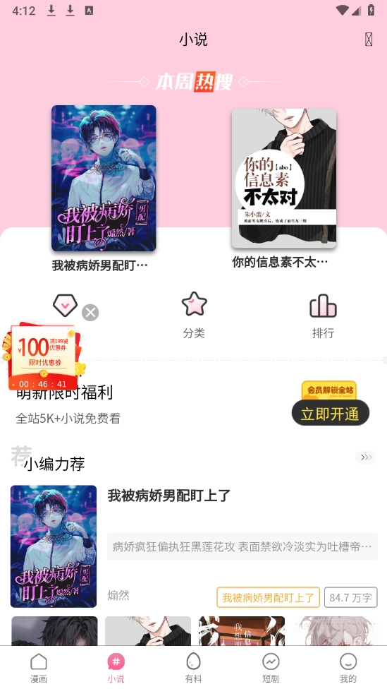 2、平台汇聚了海量且品类丰富的漫画小说资源,能够充分满足各类阅读者的多样化需求。
