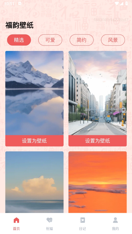 2、打开软件后,首页展示着丰富的壁纸资源分类,涵盖了精选、可爱、简约等多种不同类型。