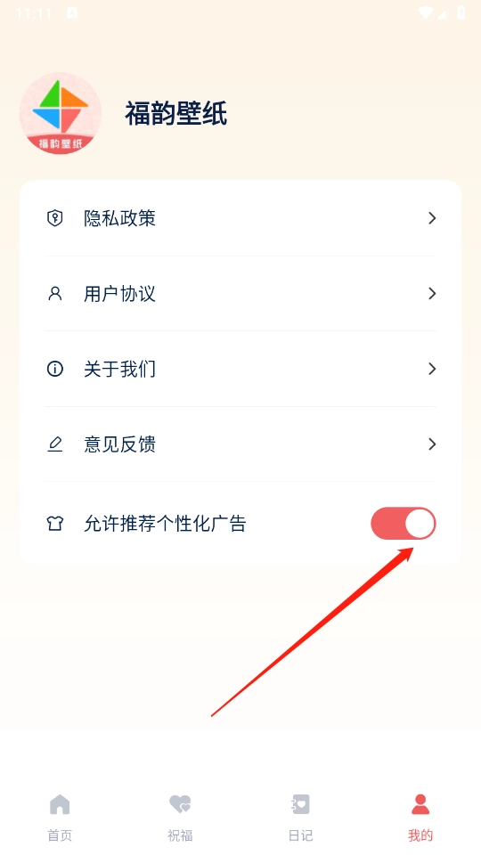2、将“允许推荐个性化广告”按钮关闭即可。