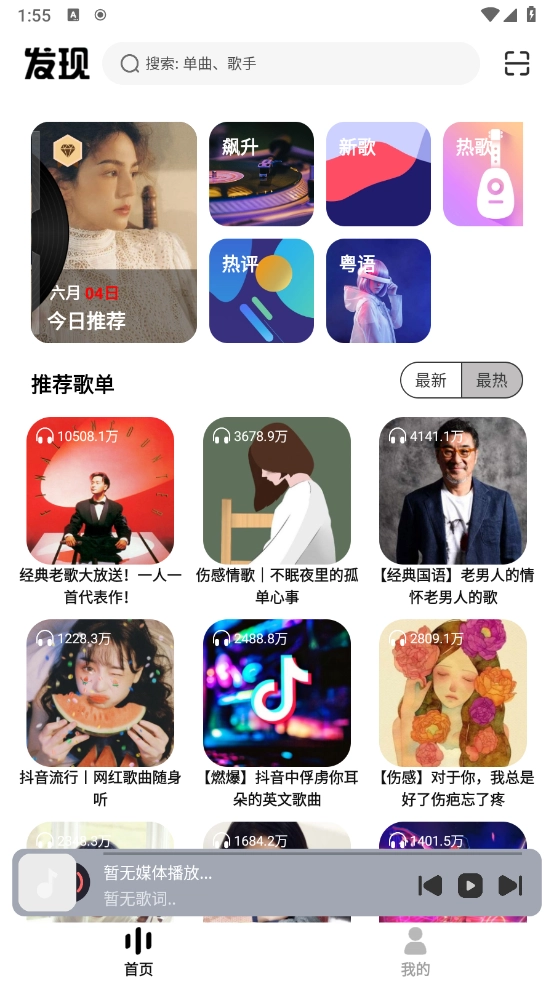 进入首页后,这里汇聚了当前最热门的音乐资源,你可以选择进行浏览。