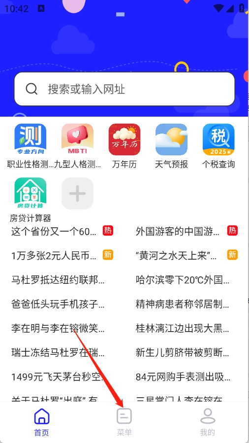 2、进入首页后,在输入框中输入关键词或网址,然后点击搜索。