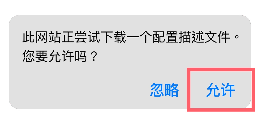 允许未知的来源,点击“允许”必要的描述文件