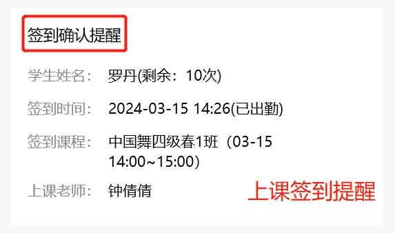 4、签到反馈及时:家长能收到孩子到校、离校的打卡提醒,全程安心无虞;