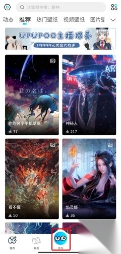 1、首先我们需要在啊噗啊噗壁纸里点击界面底部的【发布】按钮。
