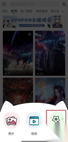 2、接着软件系统会引导我们选择发布类型,动态壁纸可选择视频或微动壁纸,这里我们以【壁纸】为例,毕竟操作流程基本一致。