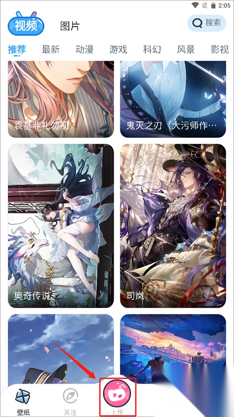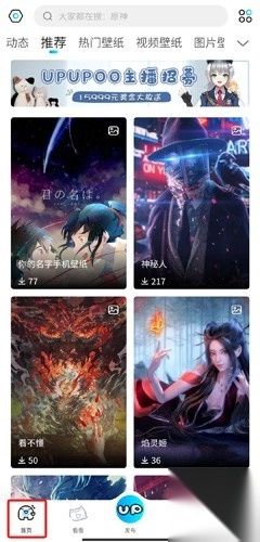 进入啊噗啊噗壁纸首页后,在页面底部找到“发布”的入口,点击该入口就能进入上传页面。