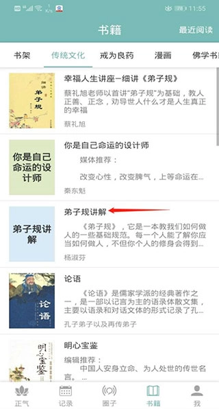 3、用户即可在传统文化板块里浏览各类书籍资源,挑选一本感兴趣的书籍开启阅读之旅。