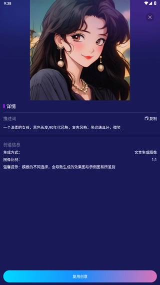 2、点击进入后能查看图片详情,接着点击【复用创意】选项;