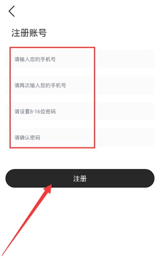4、输入号码,设置密码,点击“注册”即可完成注册;